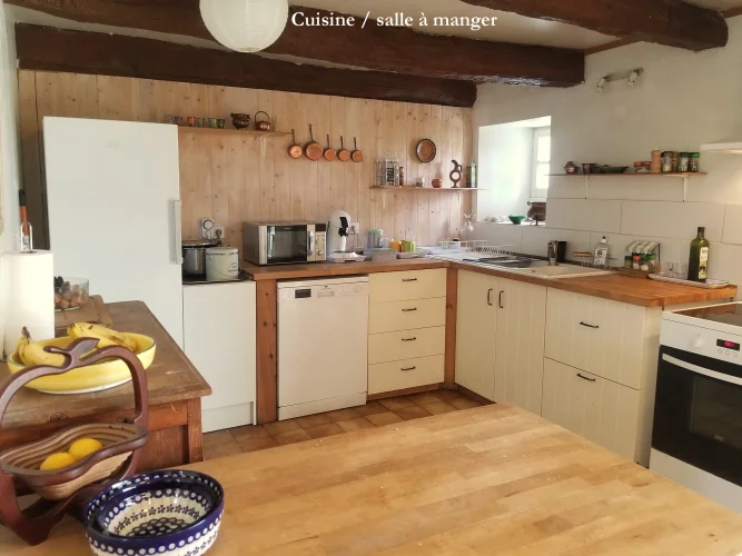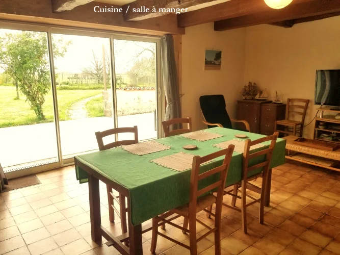 - une cuisine / salle à manger de 33 m² avec une baie vitrée à 3 vantaux donnant sur la terrasse ombragée et le jardin.