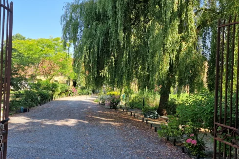 Une seconde aile indépendante – idéale pour recevoir des invités ou développer une activité prestigieuse (maison d'hôtes, réceptions, événements) – comprend un hall d'entrée impressionnant, une cuisine, une salle d'eau, des toilettes, une chambre à l'étage et un important potentiel d'aménagement.