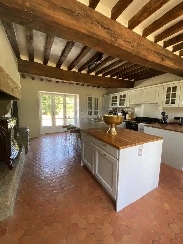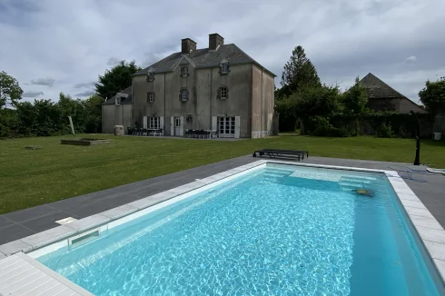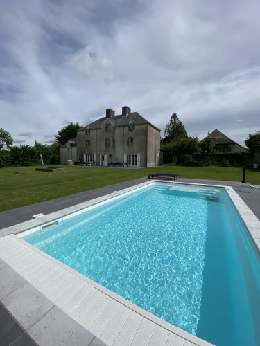 Sur un domaine de pas moins de 8.544 m² se trouve « Château la Conterie » en Normandie (Manche). Il s’agit d’une maison de vacances avec plusieurs dépendances, aménagée pour accueillir jusqu’à 19 personnes. Elle comprend 8 chambres, 4 salles de bains, une spacieuse salle à manger, un salon chaleureux et convivial, ainsi qu’une cuisine entièrement équipée. Un vaste espace de stationnement est prévu, avec 6 places extérieures non couvertes et la possibilité d’abriter encore 4 voitures supplémentaires dans les dépendances. Les 2 cheminées ouvertes, situées dans la cuisine et dans le séjour, apportent toute l’ambiance et le confort souhaités. En été, vous pourrez profiter d’un délicieux barbecue au bord de la piscine chauffée.