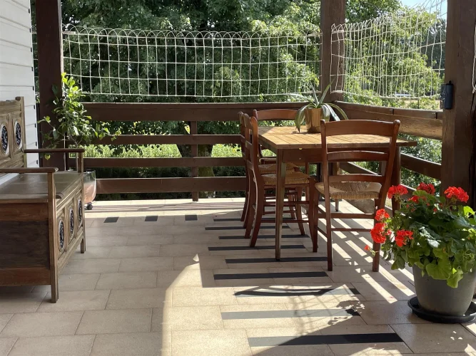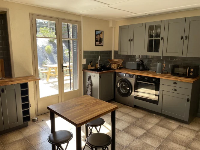 Appartement/Gîte (60 m²) - Récemment rénové, entièrement équipé et indépendant, cet appartement/gîte dispose d'une entrée séparée et d'une jolie terrasse avec coin repas. Il comprend deux chambres, un séjour/salle à manger, une cuisine équipée d'électroménager neuf, une salle de bains avec douche à l'italienne et VMC, un WC et un lavabo. Chauffage central.