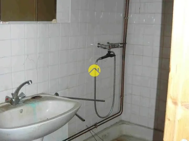A l'étage : palier, 2 chambres, salle d'eau carrelée avec lavabo et WC.