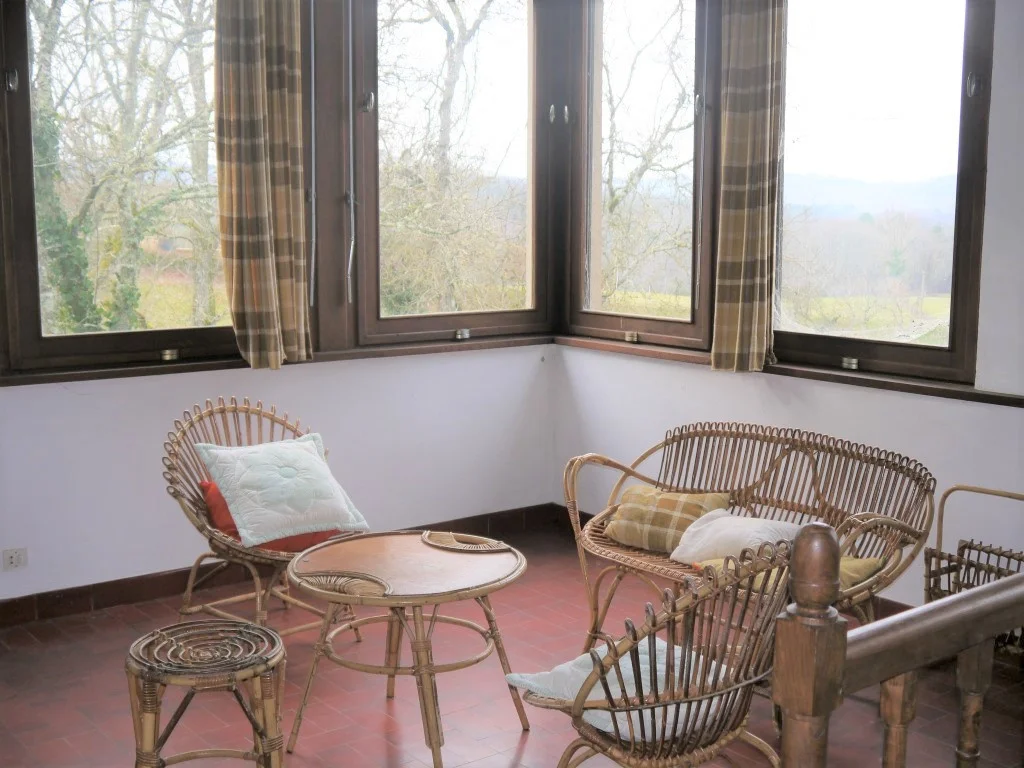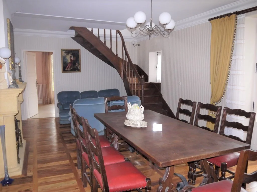 Entrée (11.35m2; salon (19.50m2) avec cheminée insert et porte menant vers la terrasse; cuisine (14m2); dégagement (2.80m2) placard et lavabos, WC indépendant (1m2); chambre (11.50m2) avec placard et salle de bains/WC (6m2). Séjour/salle à manger (29m2) avec cheminée, sol parquet, et portes-fenêtres menant vers la terrasse; bureau 1 (12.35m2) avec 2 portes-fenêtres; bureau 2 (12.30m2) avec porte-fenêtre; dégagement et placard (2.25m2), chaufferie (4.75m2).