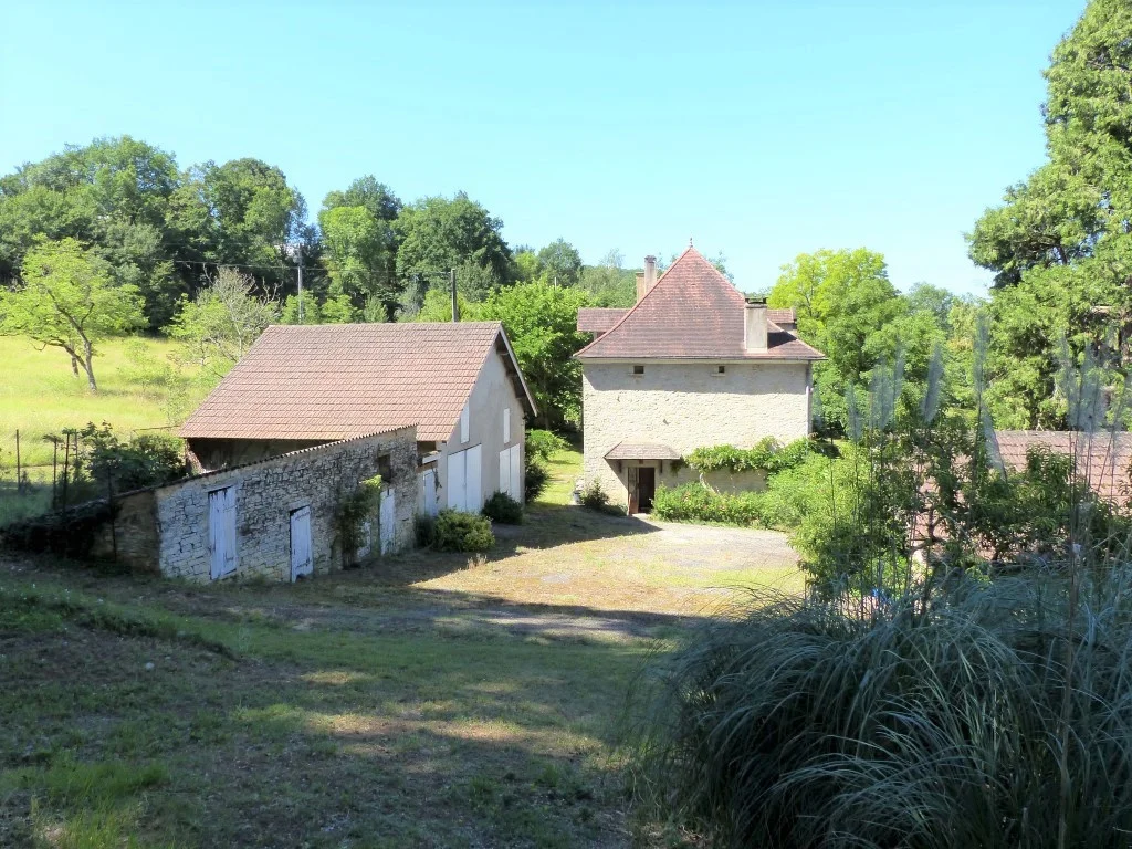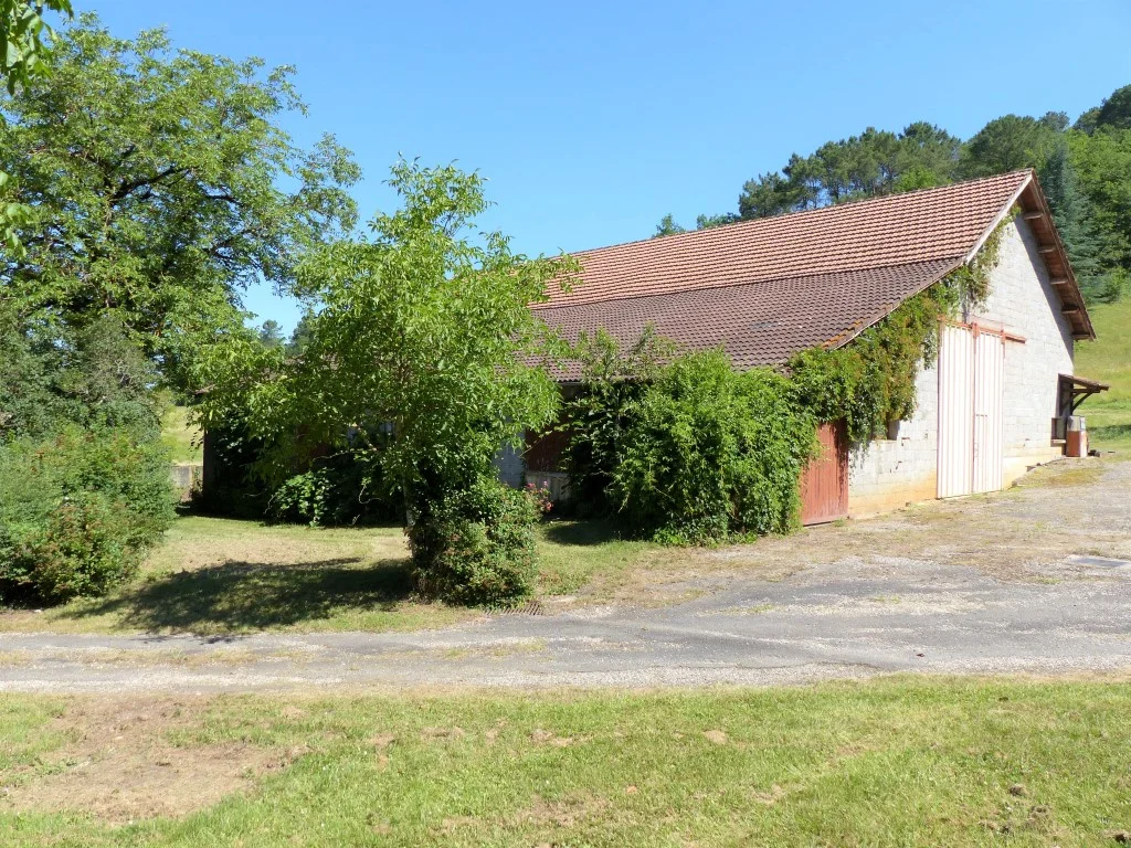 Grange en pierre avec écurie (25m2), abri (10m2), hangar (55m2), et atelier (45m2).