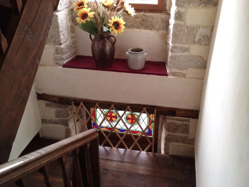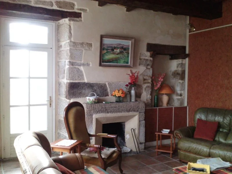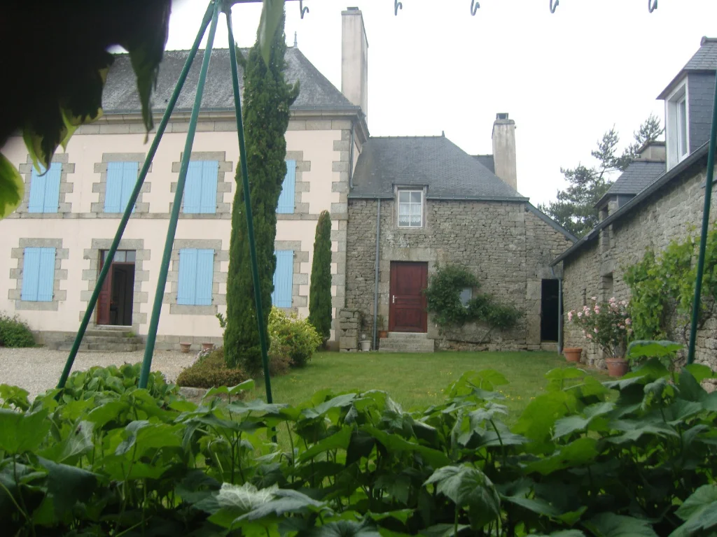 Ref. 1568 Au coeur de la Bretagne, à proximité de Pontivy et du Blavet, ancien presbytère de 1852, rénové en gîte ou chambres d'hôtes. Au rch : hall d'entrée avec bel escalier bois, salle à manger avec dalles de granit d'origine au sol, poutres apparentes, salle de bains et chaufferie avec buanderie, un wc, un salon avec cheminée et bibliothèque, une cuisine aménagée avec cheminée. Deux accès à l'étage, comprenant 4 chambres joliment décorées avec parquet, cheminée, une pièce avec murs en pierres et charpente apparente, salle d'eau avec double vasques/wc, accès au grenier par escalier bois, superbe charpente apparente et surface exploitable de 103 m². Dépendance attenante avec grès d'origine au sol. Grande longère à aménager avec toiture et charpente refaites, eau et électricité. Garage ouvert pour 2 voitures, puits, l'ensemble sur terrain clos de 1 127 m².