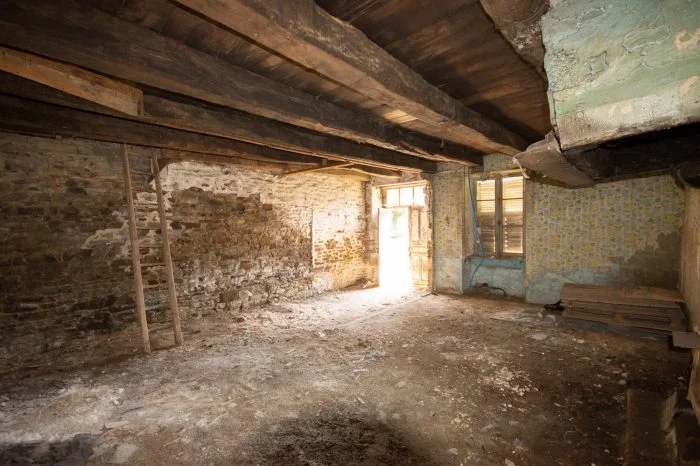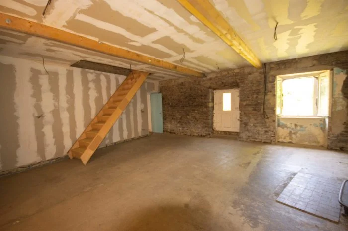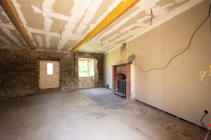 Maison attenante - A rénover entièrement plan ouvert avec cheminée ouverte