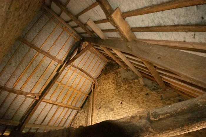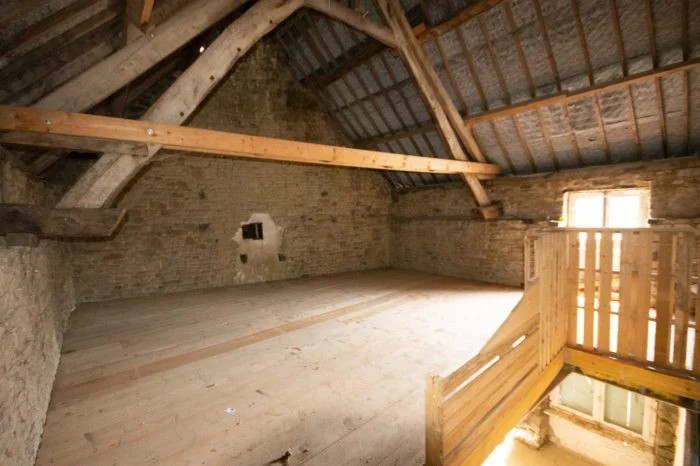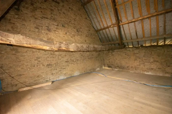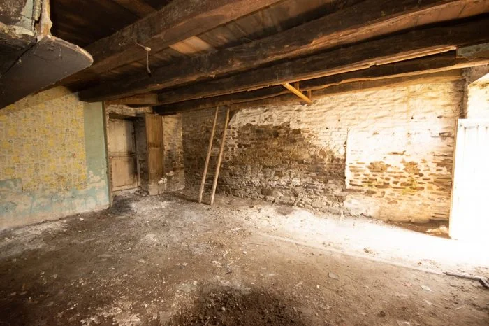 Des escaliers mènent au grenier avec 2 grandes pièces.
