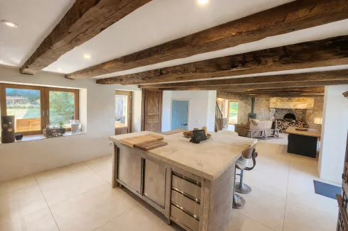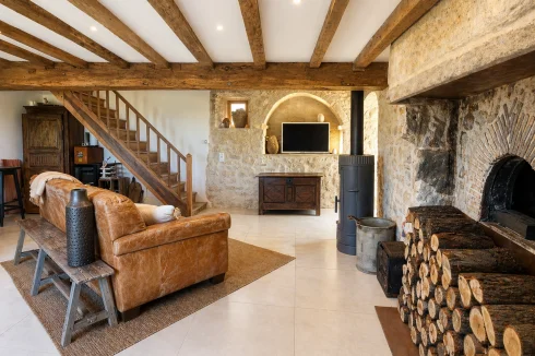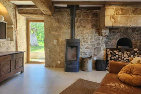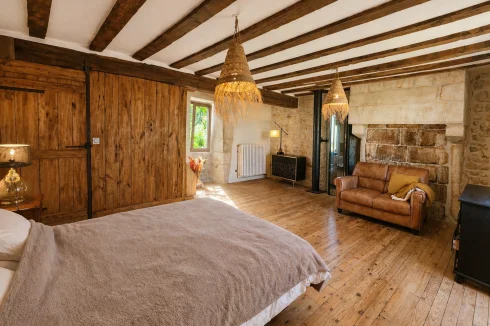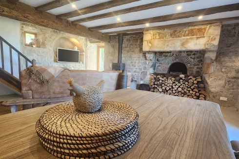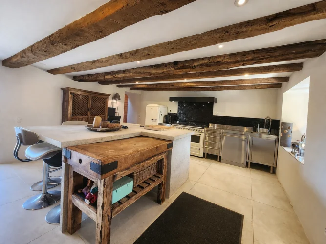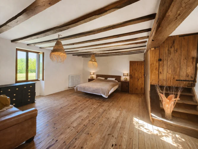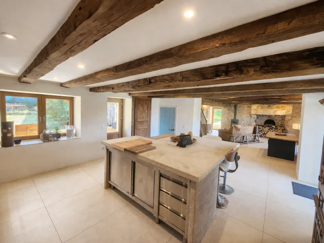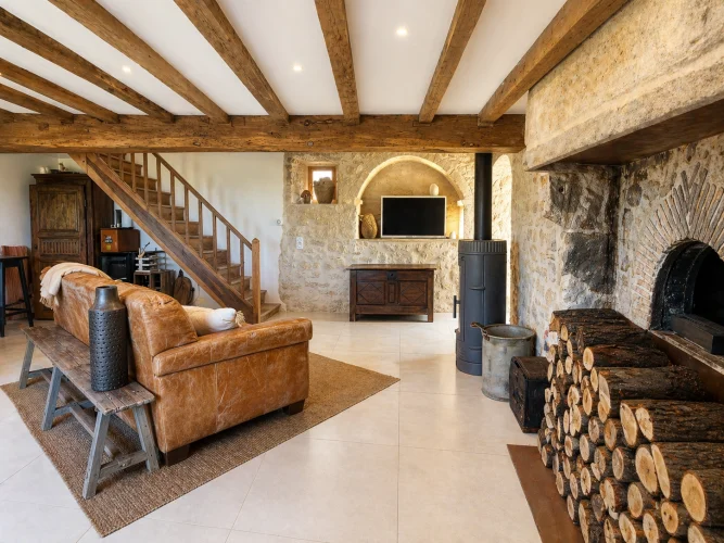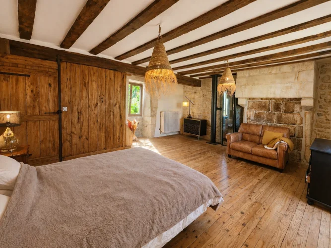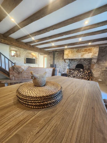 - Murs en pierre apparente et magnifiques poutres en bois