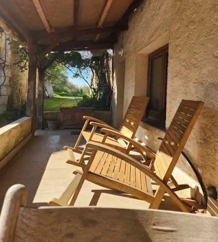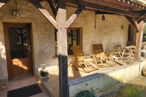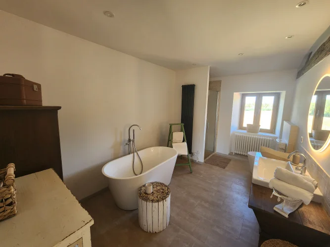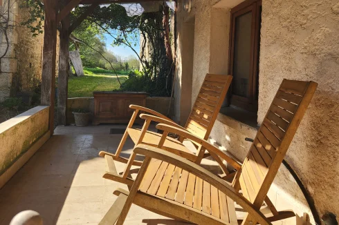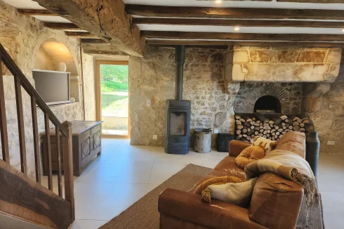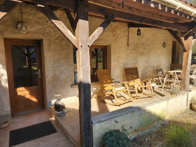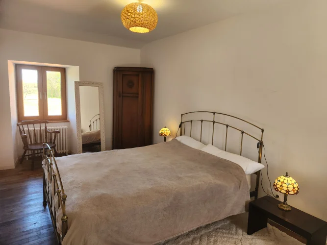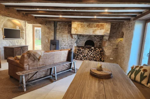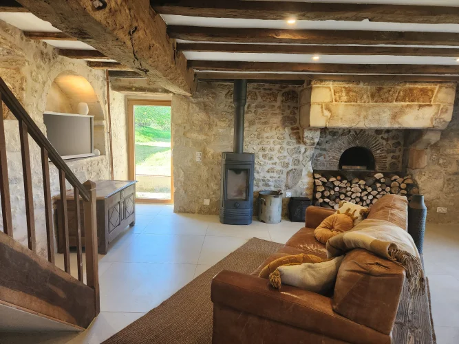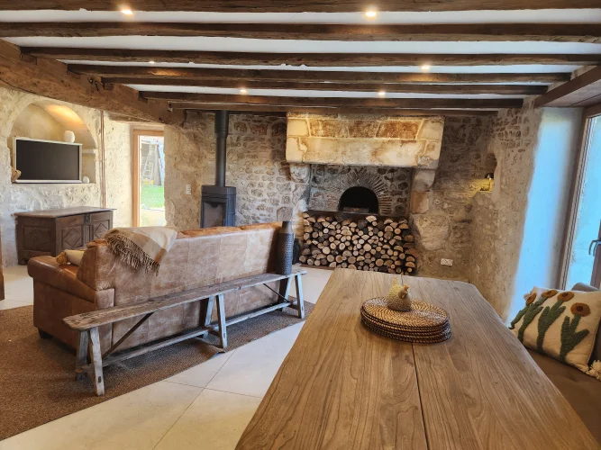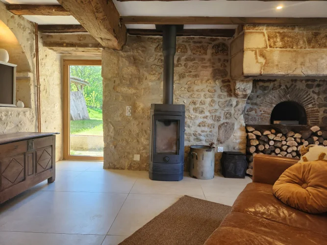 - Magnifiques murs en pierre apparente et poutres en bois, cheminée en bois, le tout entouré par la nature