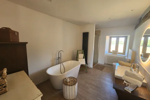 - Chauffage au sol et radiateurs prêts à être raccordés à une pompe à chaleur ou à un poêle à granulés.
