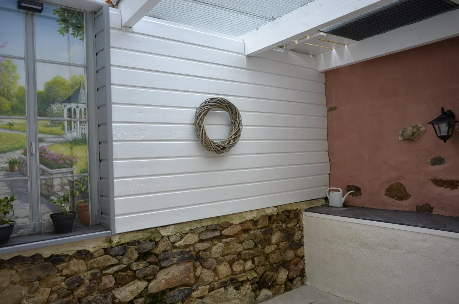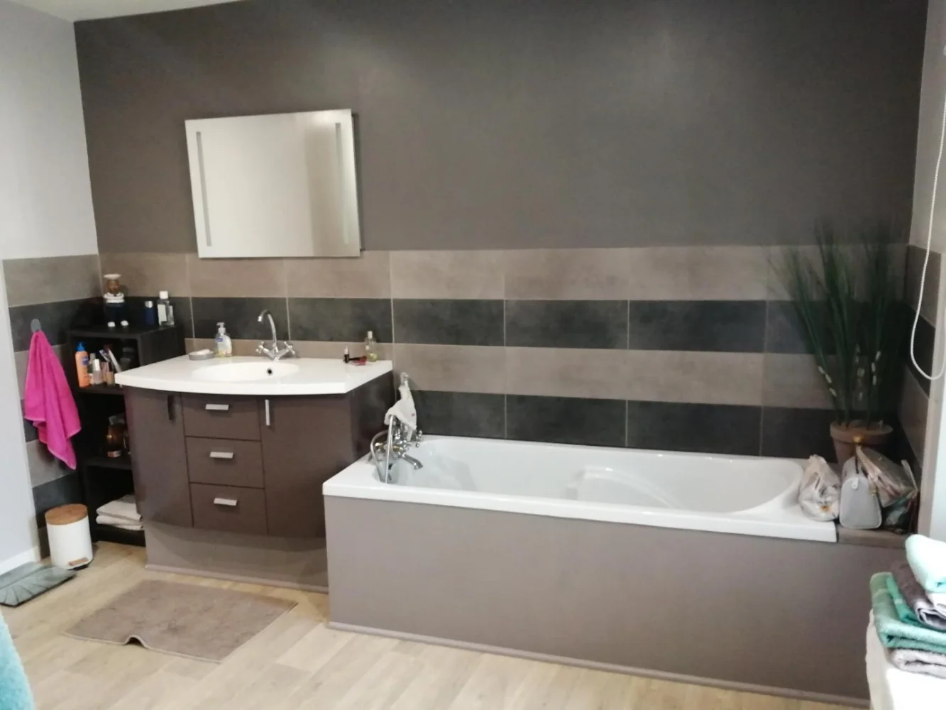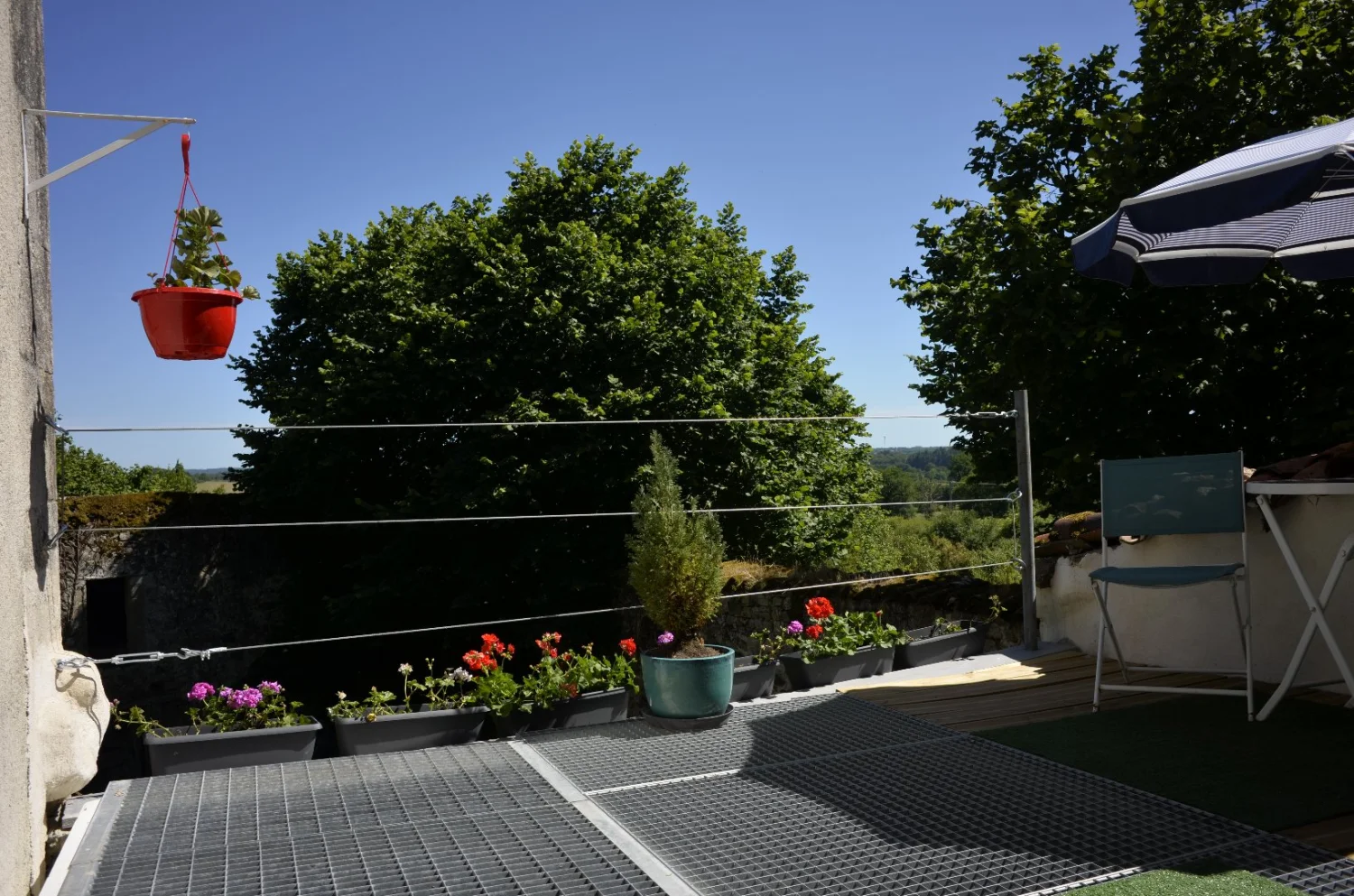 Près du centre de Brillac, une propriété de quatre chambres récemment rénovée en 2019 avec terrasse privée et cour ensoleillée. Cette maison dispose d'un garage pouvant accueillir trois voitures, d'une buanderie, d'un magasin de bois et d'une entrée privée dans la maison depuis le garage. Cette propriété est sur 3 niveaux. Au rez-de-chaussée se trouve une entrée, une grande cuisine/séjour moderne avec porte donnant sur une terrasse carrelée idéale pour un coin repas extérieur. Au deuxième étage se trouvent deux grandes chambres, un séjour avec double porte donnant sur un balcon métallique avec vue sur la campagne, un dressing. La salle de bain principale avec baignoire, grande douche à l'italienne, wc et salle de douche invités, ainsi qu'un cellier. Au troisième étage se trouvent deux autres chambres (dont une à finir). La propriété a toute l'électricité et la plomberie neuves, une bonne toiture, un chauffage central électrique et rénovée. La propriété est finie à un niveau élevé. À seulement quelques minutes à pied de deux commerces, bar/tabac, école, garage, pharmacie, lac et de magnifiques promenades à la campagne. A 13 kms environ de Confolens, environ 25 kms de St Junien avec tous les grands supermarchés, hôpital et toutes autres commodités. Une oasis dans un village. ?