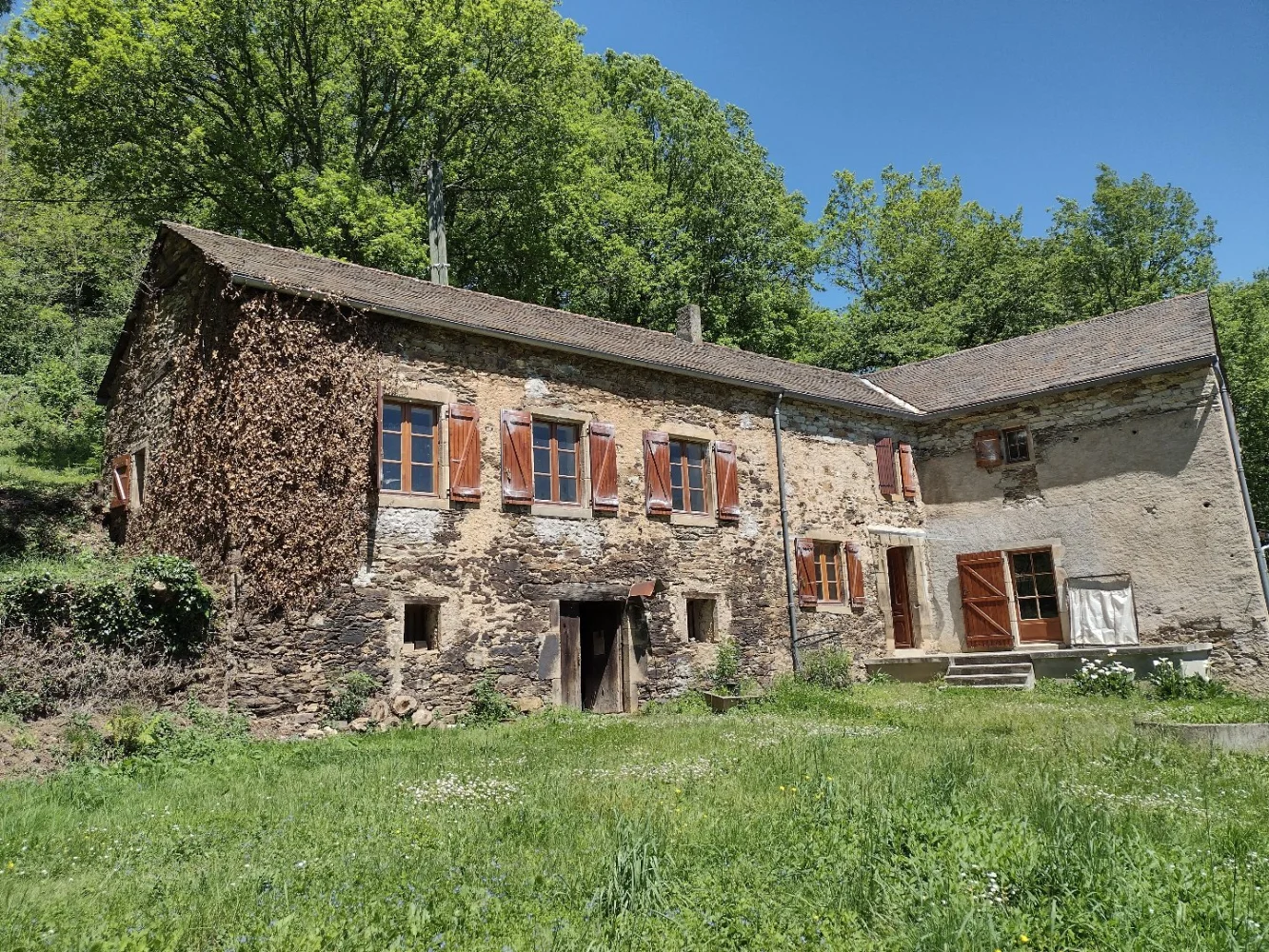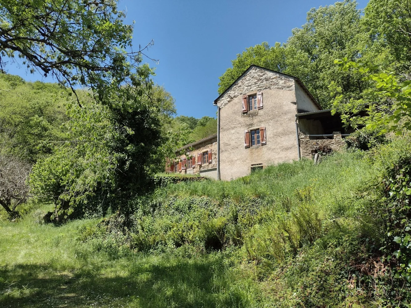 En quête d'un style de vie campagnard, entouré de la tranquillité d'une colline boisée, sans voisins à l'horizon, avec sa propre source naturelle ? Si vous êtes prêts à entreprendre quelques travaux pour moderniser cette charmante propriété tout en la conformant à vos goûts, cette opportunité est faite pour vous. Laissez-vous séduire par cette oasis de quiétude, à seulement 7 kilomètres des commerces et à 40 minutes de la ville la plus proche. Cette ancienne ferme, transformé à partir des années 1980 en une résidence secondaire pleine de caractère, offre un espace de vie de 126m2 sur deux niveaux. Au rez-de-chaussée, vous serez accueilli par un salon de 20m² agrémenté d'une cheminée, ainsi qu'une cuisine de même dimension, offrant un accès direct à une terrasse couverte de 20m² équipée d'un barbecue, idéale pour des moments de détente en plein air. Quelques marches vous mènent depuis le salon à la première partie nuit, comprenant trois chambres de tailles variées (8.6m², 11m² et 9.9m²), une salle de bain et des toilettes. Un escalier, situé dans la cuisine/salle à manger, conduit à la deuxième partie nuit, avec deux chambres spacieuses de 17m² chacune, dont l'une nécessite quelques finitions (électricité/peinture), ainsi qu'une salle d'eau avec douche et toilettes. Toutes les pièces de la maison sont orientées vers la vallée, offrant ainsi une vue panoramique imprenable vers le sud-est. Au rez-de-jardin, sous la maison, vous découvrirez des caves, et il y a aussi une grange d'environ 35m² par niveau, offrant un espace supplémentaire pour abriter une voiture ou concrétiser d'autres projets selon vos besoins et envies. Bien que nécessitant quelques mises à jour, cette propriété a été bien entretenue au fil des ans, avec une toiture rénovée et des menuiseries refaites (en simple vitrage). Le chauffage est assuré par une cheminée ouverte. À noter que la fosse septique datant des années 1980 nécessite une mise aux normes. La maison est actuellement alimentée en électricité, tandis que l'eau provient d'un puits équipé d'une pompe et d'une source naturelle. L'accès à la ferme se fait par un chemin non pavé, offrant ainsi une intimité totale sur la colline surplombant la vallée. Les 14,5 hectares de bois environnants, comprenant notamment une châtaigneraie, descendent en plusieurs niveaux jusqu'à un ruisseau délimitant la propriété en contrebas. Autour de la maison, le terrain dégagé est agrémenté d'arbres fruitiers et d'un potager, alimenté en eau par la source naturelle. L'ensemble se trouve en vallée du Tarn, pas loin d'Alban avec les premières commerces ou encore Trébas avec sa plage et son marché d'été et à 40 minutes d'Albi, cité sur la liste de patrimoine UNESCO. N'hésitez pas à nous contacter pour organiser une visite et découvrir par vous-même le potentiel de cette propriété unique, offrant une harmonie parfaite entre vie rurale et tranquillité naturelle.
