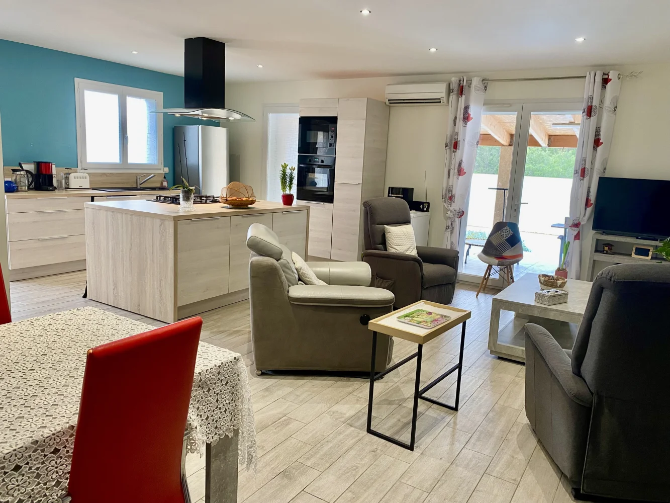 Venez découvrir cette charmante maison 3 faces de 4 pièces d'environ 92 m2 avec garage. Elle se compose d'une vaste pièce à vivre comprenant une cuisine équipée et salon-séjour avec climatisation, 3 chambres avec placards, une salle d'eau et un WC. Les plus: une terrasse couverte avec cuisine d'été, panneaux photovoltaïques avec batteries, isolation thermique des combles et du vide sanitaire, piscine avec local technique. À visiter sans tarder. Les informations sur les risques auxquels ce bien est exposé sont disponibles sur le site Géorisques : »