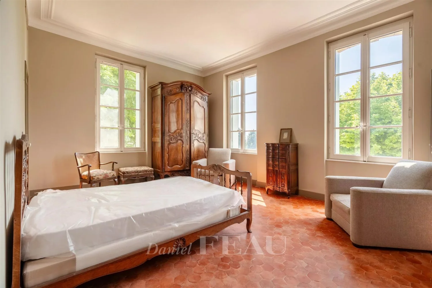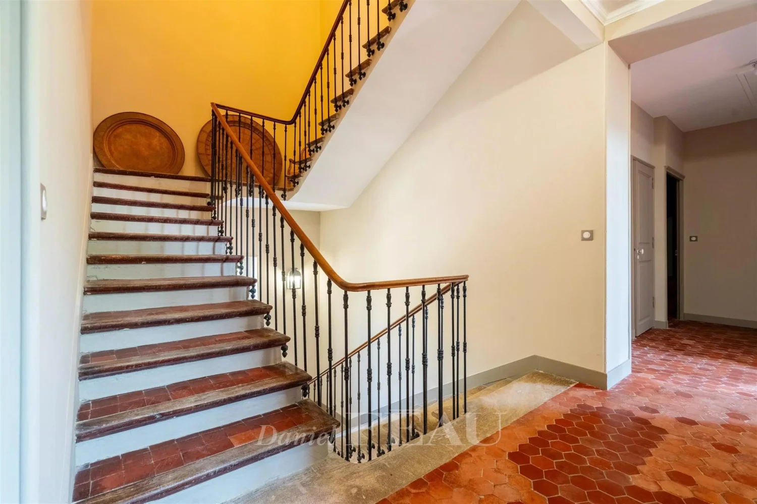 Une habitation principale de caractère (château) sur trois niveaux, avec terrasses et piscine, offrant confort et élégance,